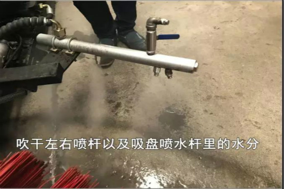 4.启动底盘发动机,采用气吹水,吹干滞留在左右喷杆、吸盘喷水杆、后喷雾杆里的水分