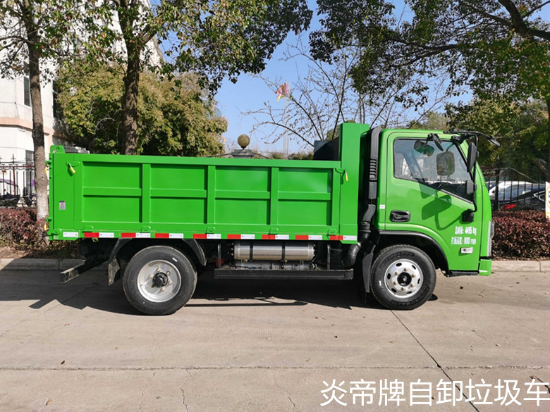 SZD5040ZLJDF6型自卸式垃圾车;外形尺寸:4995×1950×2160;货厢尺寸:3200×1800×800;总质量:4495kg。
